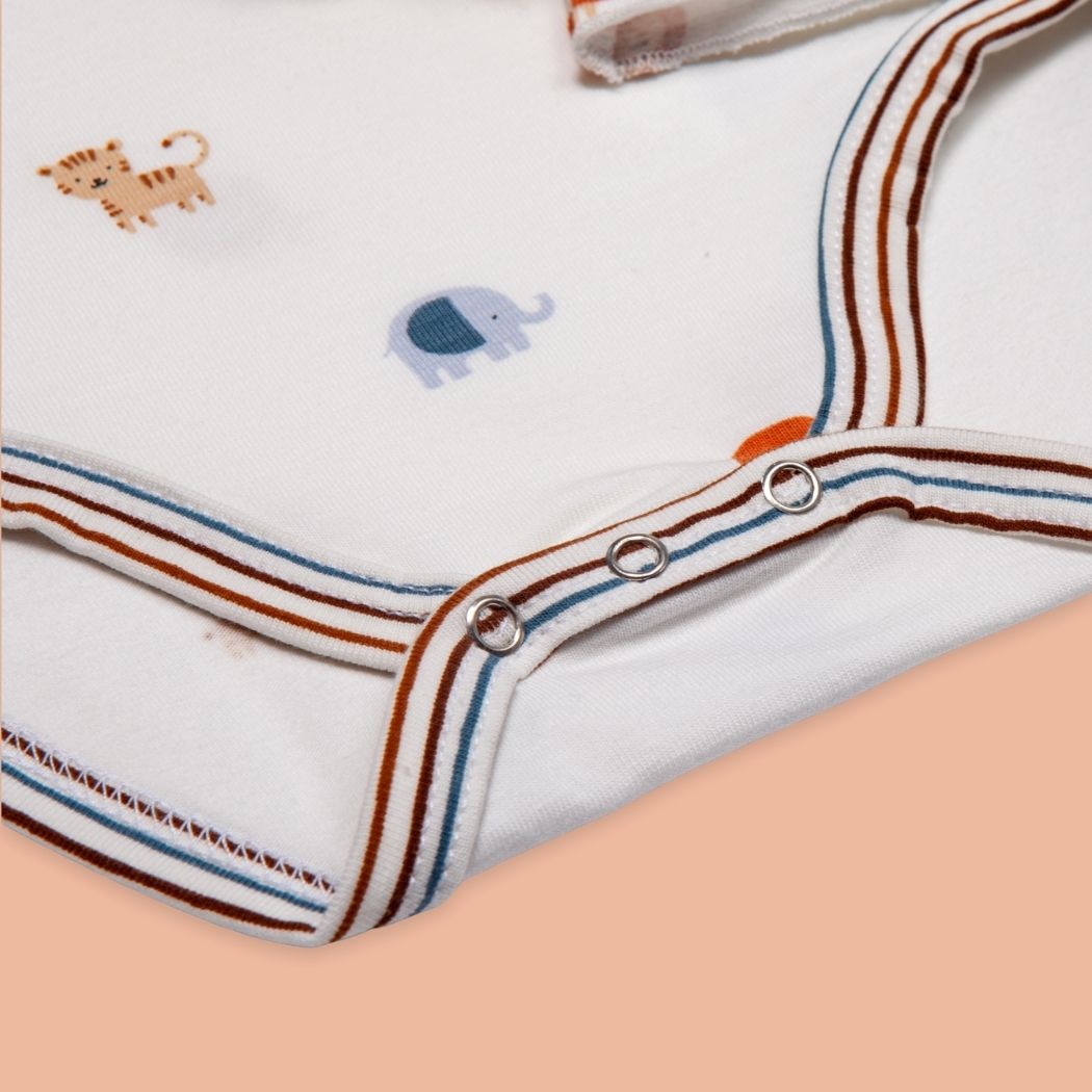 Il body neonato in cotone è uno dei capi più utilizzati nei primi mesi: per questo lo abbiamo pensato semplice da indossare, pratico da lavare e resistente all’uso quotidiano. Le cuciture sono curate per evitare fastidi, mentre la chiusura con bottoncini rende il cambio rapido e senza stress, sia a casa che fuori.