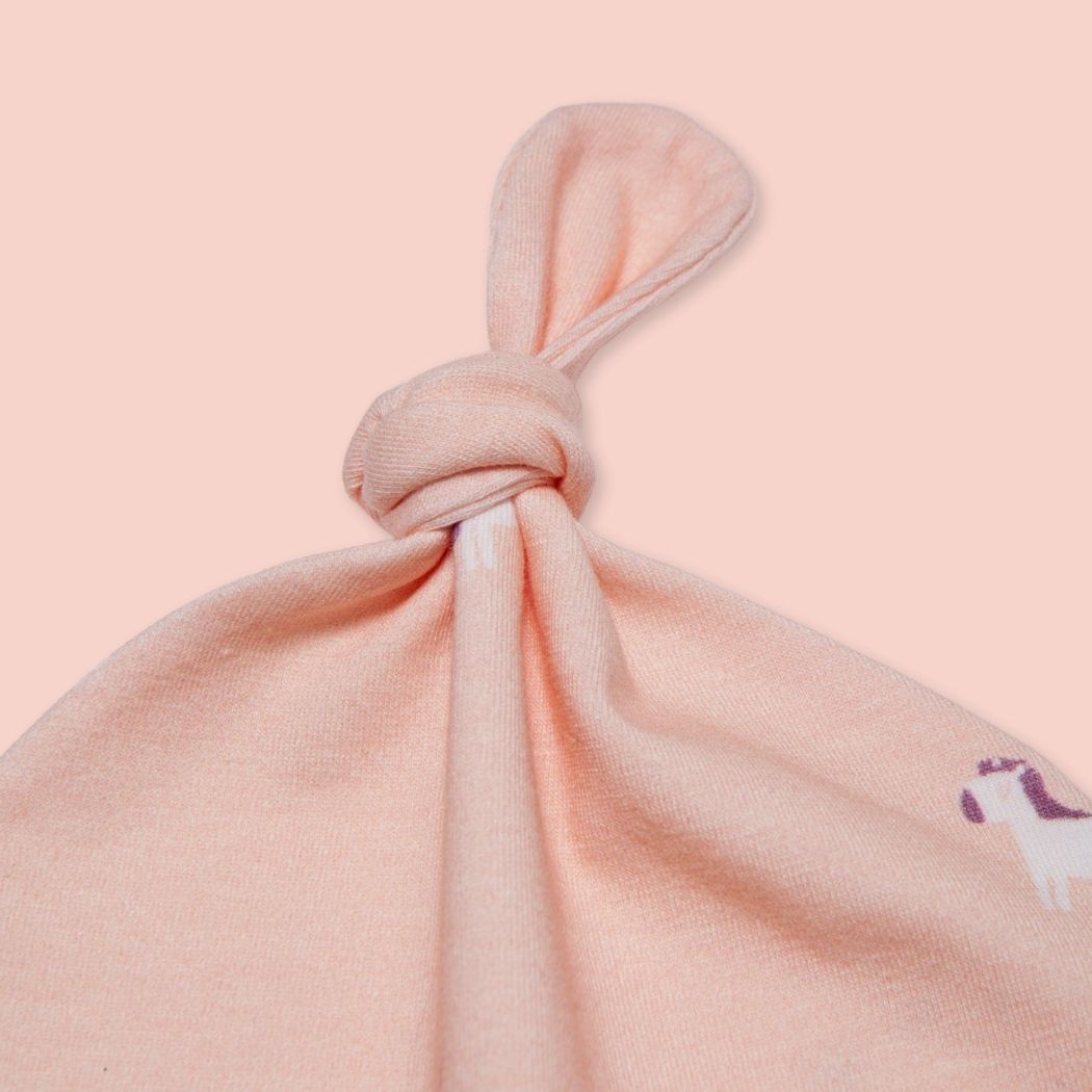 La cuffietta neonato con nodino di Let the Cat In è pensata per accompagnare i bambini fin dai primi giorni di vita, anche durante la permanenza in ospedale, e per essere indossata comodamente fino ai 6 mesi.